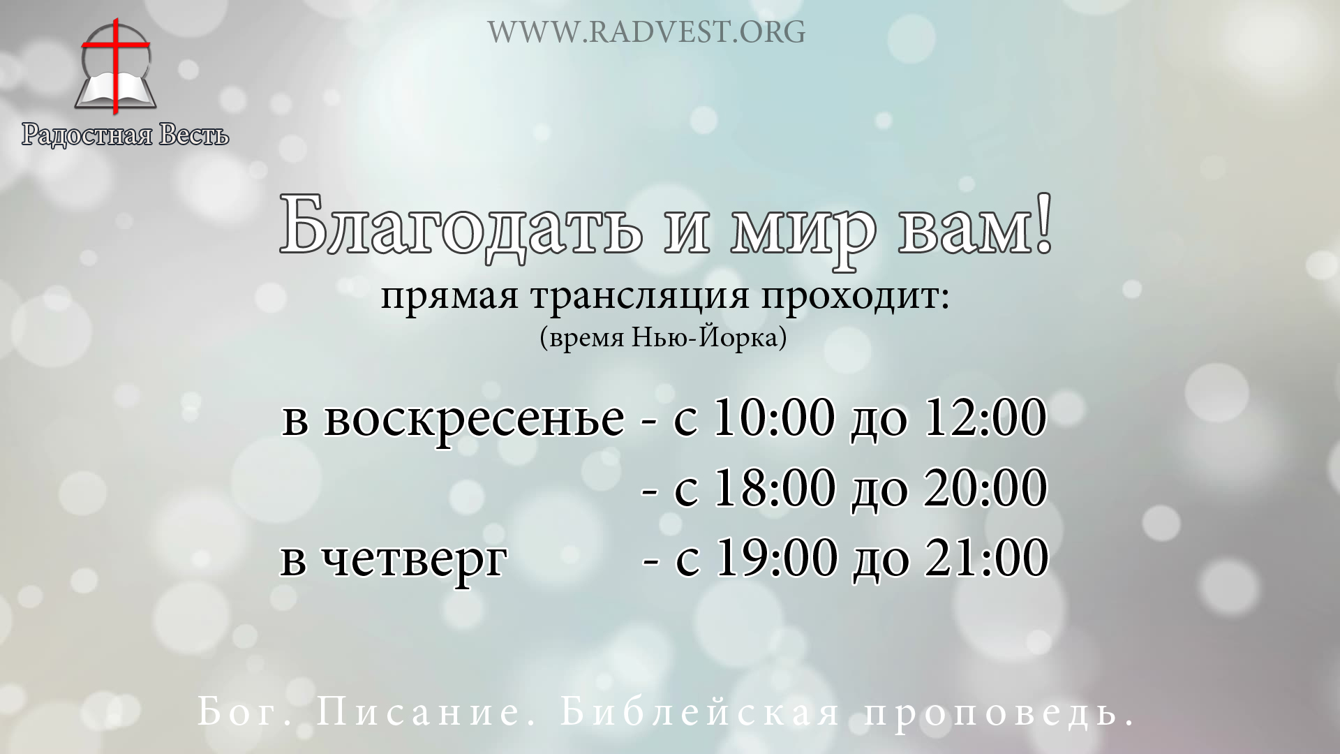 Добро пожаловать на прямую трансляцию служения Церкви Радостная весть Watch our channel for live streams broadcast from Church of the Wonderful News! Our channel translates sermons, worship songs, spiritual hymns, christian poems, choir songs, children songs from the service of the Church of the Wonderful News in Feasterville, PA.